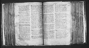 | Domesday Book survives as two volumes, in fact. The first volume surveys all the English shires apart from the northern counties of Cumberland, Westmorland, Northumberland and Durham, and the East Anglian counties of Essex, Suffolk and Norfolk. The East Anglian counties are dealt with in the second volume, known as Little Domesday. The second volume deals with the material in much greater detail, for example enumerating the livestock held by each landholder. Both volumes must have been compiled from a large archive of material collected by the commisioners, but this has all but disappeared. William the Conqueror may have wanted to put legal process into written form, but the art of archiving was not yet developed. | |||