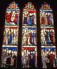 | Pseudo-Dionysius codified the concept of the nine orders of angels, much used in medieval art, as in this stained glass window in All Saints, North Street, York. | ||||