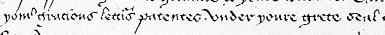 | Segment from a petition of the Abbot and convent of Tewkesbury, of 1449, requesting letters patent under the great seal (London, National Archives E.28/79/30), by permission of the National Archivese. | ||