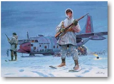Since the seventeenth century, the National Guard has provided units for the first-line defense of the nation. The Scout Battalions of the 297th Infantry, Alaska Army National Guard, composed mostly of Eskimos, continue this historic mission. Supported by the 176th Tactical Airlift Group, Alaska Air National Guard, the Scout Battalions patrol the vast Alaskan tundra. The battalions were organized during World War II and given the mission of providing early warning in case of an enemy landing. Just as they have done since 1942, the Scouts operate from small villages in Northern and Western Alaska, constantly observing the Bering Sea coastline and often providing significant intelligence information. Like their colonial predecessors, the Scouts of the 297th Infantry and the airmen of the 176th Tactical Airlift Group continue to defend their community, state, and nation.