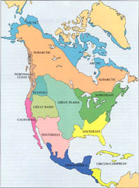There are 12 divisions (Culture Areas) for North and Middle America: Northeast, Southeast, Southwest, Great Plains, Great Basin, Plateau, California, Northwest Coast, Arctic, Subarctic, Mesoamerica and Circum-Caribbean.