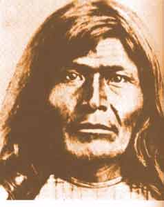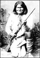 Geronimo was the most legendary and feared of all the Apache warriors. He was known as a chief but he wasn't. He was a very powerful medicine man and shaman that could foretell the future. He was a war leader for a small group of Apaches in Southeastern Arizona during the 1850's through 1880's. He was born with the name Goyahkla, which means "one who yawns." However some Ft. Sill Apaches gave the meaning as "intelligent, shred and clever." He was given his name Geronimo from the fear he produced in his Mexican enemies. As he would attack they would yell out the name of their patron saint Jerome. This translated into Geronimo, so he took this as his nickname. One of the first spirit communications he received was shortly after the death of his family in Kaskiyeh. He went to a top of a mountain and heard a voice call his name four times. The voice told him "No gun can ever kill you. I will take the bullets from the guns of the Mexicans, so they will have nothing but powder and I will guide your arrows." He was wounded many times but never killed by a bullet. He died on February 17, 1909 in Ft. Sill, OK. His only last wish was to return to Arizona, to his homeland. He was never allowed to return to Arizona and died a prisoner of war.