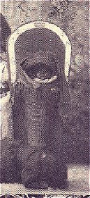 Left: Unidentified , but postmarked Arizona in 1906, this card is "embossed" (the infant and cradle are pressed out from the back to give the card texture). Copyright on the picture is H.H. Tannen, 1903. Although the card is well-worn and soiled, I enjoy it for its detail and the happy infant. The cradleboards often provided raised hoods to protect the child from weather.