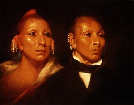 This 1833 painting by John Jarvis portrays the celebrated Sauk Chief Black Hawk and his son. Black Hawk led the last major uprising of Native Americans in Illinois. Known as the Black Hawk War of 1832, the uprising began when white settlers shot a peaceful Sauk emissary.
