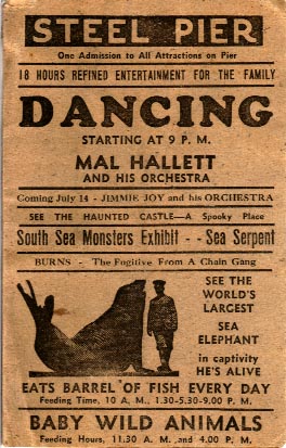 Above is an autographed postcard advertising Robert Burns's appearance at the Steel Pier in Atlantic City in 1932. Below is an hand-out advertisement for a later appearance, probably in 1934.