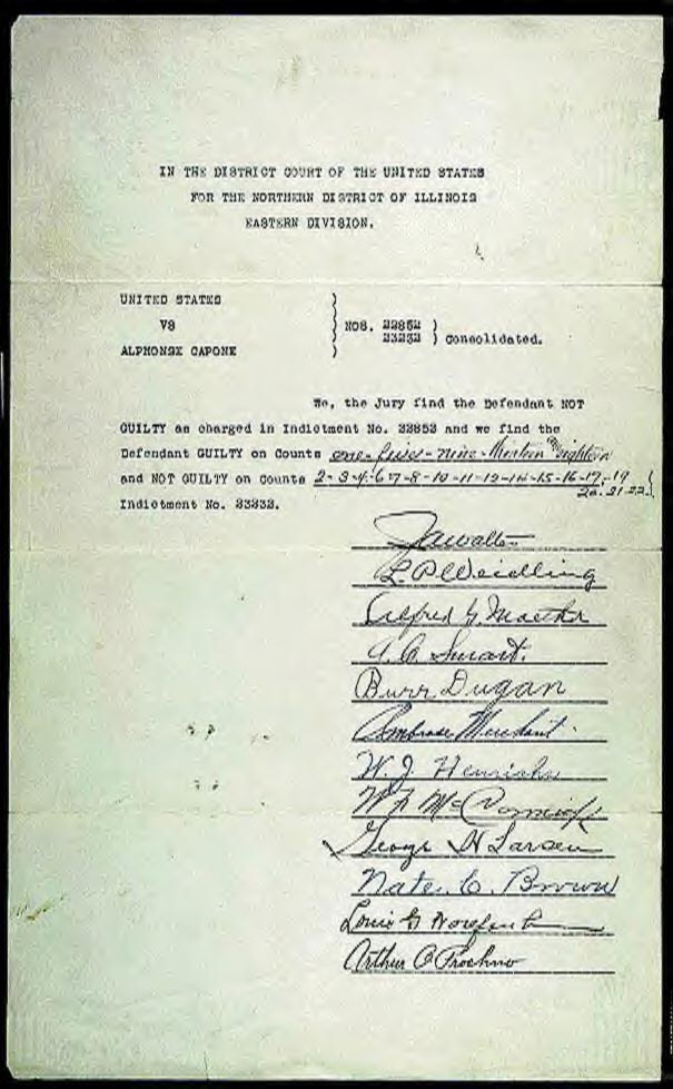 The Jury Decision Sheet in the Case of the United States vs. Alphonse Capone - Capone Was Sentenced to 11 Years in a Federal Prison
