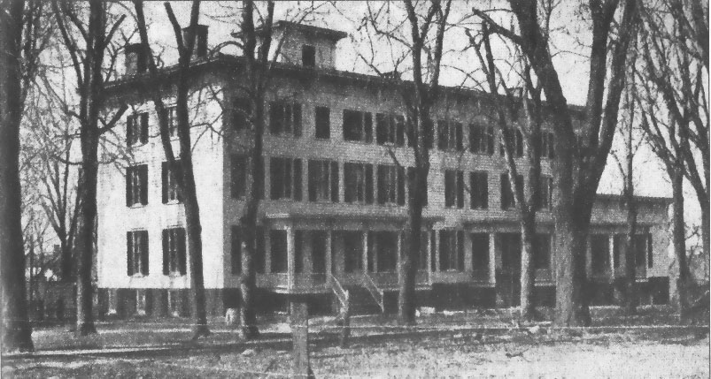 Mike Dear Mike: I checked our 1876 Matawan map (it's a copy, so don't plan on robbing us) and it shows a "Matawan Institute" on Church Street near Wyckoff Street. I am sure that is the school you are asking about. Once we had the name, the research proved easier than I thought. My assumption based on the old map proved correct, and it was a snap from there. Here is a short history of the Matawan Institute, originally known as the Glenwood Institute, in Matawan: The Glenwood Institute in Matawan opened in 1834 in a single room above a bank on Main Street. It was originally named the Middletown Point Academy and soon outgrew its quarters. Building began for the new school building around 1836 at the northwest corner of Church and Jackson Streets. It was a two-story building and, "With a handsome cupola and pillars, the school was a pretentious one." With the new building and prominent location, the school quickly became known as one of the finest private schools in the country and many famous families from as far away as St. Louis and New Orleans sent their children there. Philetus Phillips became principal of the new school and designed a course of co-educational educational. In the early years he attempted to make keep the boys from becoming preoccupied staring at the girls (and visa versa) by hanging a curtain between the two groups, but the result was a curtain with many tears. Painting and embroidery were among the studies of the young women. One of the first two graduates was Henry Stafford Little, who later became very prominent and a great benefactor to Princeton University. In 1857, a larger school was needed and erected on a site opposite the original school. The name was changed to Collegiate Institute of Middletown Point. In 1859, Garrett A. Hobart, later vice-president and the namesake of Garrett Mountain Reservation in Passaic County, was a student. The most famous teacher of this period was Robert Laird Borden, who arrived from Nova Scotia in 1873 to teach mathematics and the classics. Thirty-seven years later Borden became Prime Minister of Canada and represented his nation at the Peace Conference in France following World War I. The building was enlarged in 1874, and the name was again change to Glenwood Institute. In the early 1900's, it became a military school under the ownership of Colonel C. J. Wright, and it was re-christened for the final time as the Matawan Military Academy. In 1915, competition from the free public high schools in Matawan forced the school to close. It stood empty for a while, but eventually the building was renovated into an apartment house, and now, I suppose, a coop. I hope you enjoyed our little history lesson and I hope you find it helpful. If you want more information you should visit the Matawan Public Library on Main Street, across the street from Boro Hall. When the Academy closed, its library was merged with theirs and they still have many books and documents from the school. Below is a photo of the Matawan School, circa 1918.