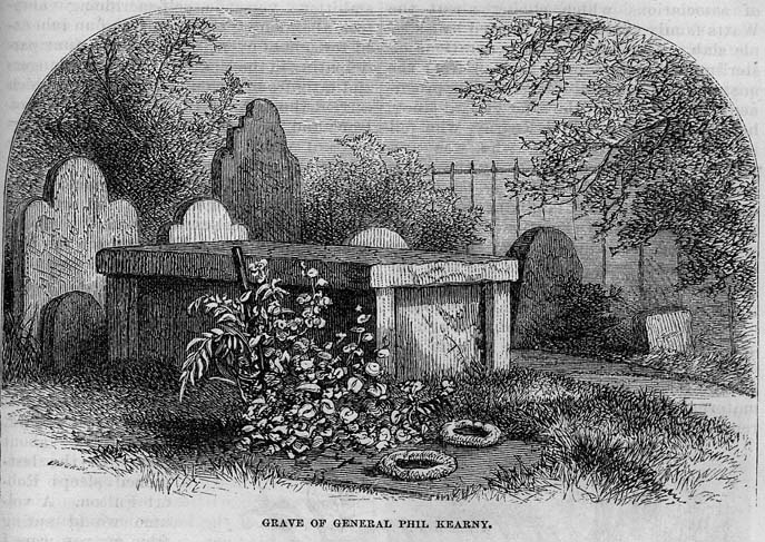 An engraving showing Philip Kearny's first burial site at the Watts family plot at Trinity Church.