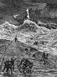 citizens of Metedeconk. [EDITOR'S NOTE: Stephen Crane is one of the most celebrated writers associated with the State of New Jersey. He was born the day after Halloween in 1871, in Newark, the last of fourteen children. His father, a minister, moved the family to Paterson in 1876, and after his death in 1880, Stephen's widowed mother moved the family to Asbury Park, where he remained until he entered college in 1890. After only one semester at Syracuse University, Stephen began working for the New York Tribune as a journalist, and as author of a few well reviewed, but not commercially successful novels. In 1893, he wrote the "The Red Badge of Courage" which was a bestseller here and in Europe. He continued to pen novels, poems, short stories, and newspaper articles at a tremendous pace until his death in 1900, at the age of 29, from tuberculosis. The only memorial to him in New Jersey is the Stephen Crane Museum, 508 Fourth Avenue, Asbury Park, which is the house where he grew up. A wall that commemorated his birthplace in downtown Newark was bulldozed in 1996 to make way for a new parking lot. Metedeconk was a fishing and shipping village located at the mouth of the Metedeconk River in what is Brick Township today.]