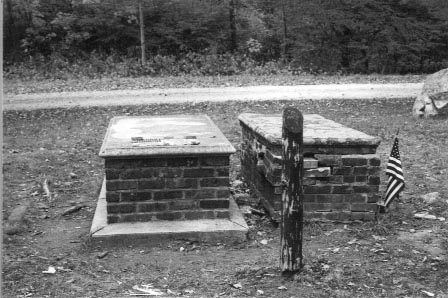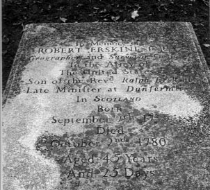 Above are the graves of Robert Erskine (left) and his clerk. Erskine's wife remarried after his death, and we guess they didn't want to waste a grave. According to "Old Burial Grounds of New Jersey," Erskine's ghost was seen for years in the early nineteenth century sitting on the crypt and holding a blue lantern. When Mrs. Hewitt repaired the bricks and foundation, the ghost disappeared. Below is a closeup of his grave.