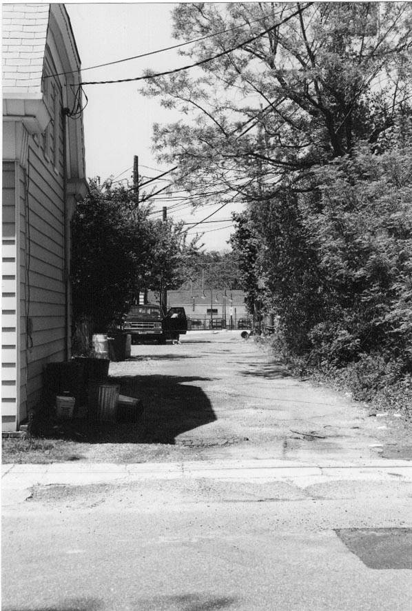 Could this be the Last Remnant of the Railroad Spur Bed in Long Branch? This Photo is of a Small Alley Which Runs Alongside Lincoln Avenue Near the Eleberon Railroad Station. After Extensive Research We Have Concluded, Who Knows? The Image Below May Provide a Further Clue. It Shows Sections of Railroad Track Used as Fence Posts on the Right of the Alley. Could these be the Actual Track Used for the Spur?