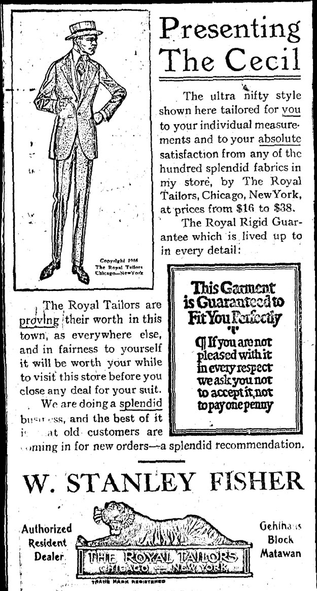 This is an actual advertisement purchased by Stanley Fisher in the "Matawan Journal" newspaper of May 4, 1916, just two months prior to his death.