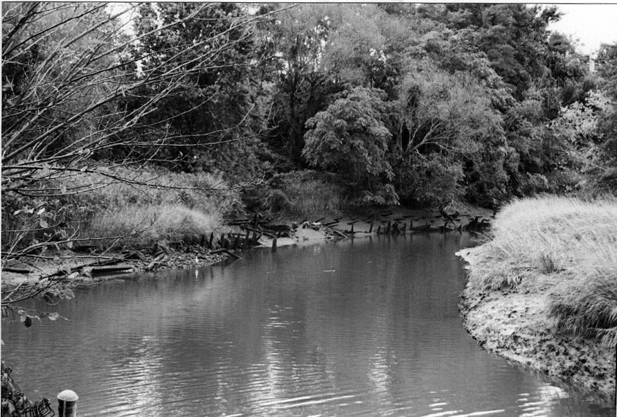 This is the location of the Wyckoff Dock where Lester Stillwell and his friends were attacked by the shark. The dock was situated to the left and center of the photo. You can still see the remnants of the dock at low tide (see photo below).