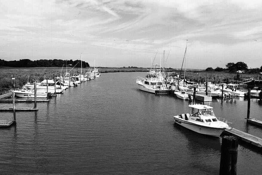 This is the Matawan Creek as viewed from the drawbridge where Captain Cottrell first spotted the shark. The Raritan Bay is in the background.