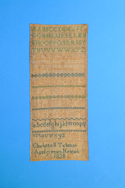 Sampler by Charolette Tichenor, age 9, 1828.
