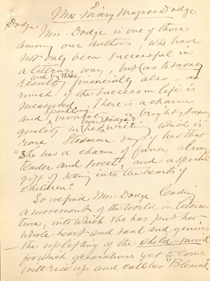 vitality-a bright, sunny quality in her (Mrs. Dodge’s) writing,