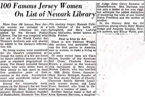"100 Famous Jersey Women"  The Newark Sunday Call, October 12, 1941.