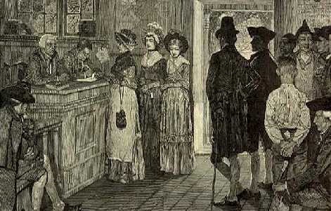 This drawing by noted illustrator Howard Pyle appeared in the magazine, Harper’s Weekly, in 1880, a Presidential election year. Suffrage leaders were actively trying to convince Democratic, Republican and Greenback Labor candidates to endorse woman suffrage. This illustration recalls the fact that women had once voted in New Jersey in 1800 and suggests a precedent for women’s demand. |