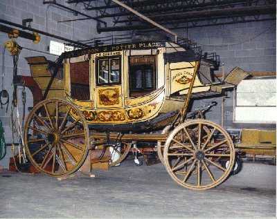 This coach now owned by Colby-Sawyer College was ordered by Lewen C. Currier of Hopkinton, New Hampshire on March 12, 1874. Mr. Currier ran the coach for a few years between Hopkinton and Concord. A later owner of this coach became interested in the way the westerners hitched three horses abreast instead of the usual two lead and two wheelers, and had his driver, Charles F. Shepard, try this arrangement. Soon other coachmen in the east tried and accepted this method.