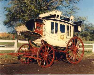 This coach is believed to have been built for Hon. Ginery Twichell, a stage line operater in Central Massachusetts between 1830 and 1846. This restored coach is now the property of Mr. and Mrs. Edward Cowles of Bath, New Hampshire. It is a familiar sight at parades and other festivities throughout New England.Ginery Twichell was called "The Unrivalled Express Driver." In 1864, he drove from Worcester to Greenfield, back to Worcester, and on to Boston--all druring a storm. The purpose of this 150 mile trip was to deliver newspaper dispatches. He became so popular he was given his own coach, which was substantial and required very few repairs. The largest party the coach carried, 62 young ladies, was to the suburbs to pick blackberries. Twichell later became President of the Boston and Worcester Railroad and the Atchison, Topeka and Santa Fe Railroads.