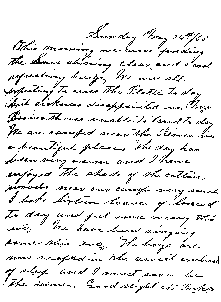 This diary page was written by a lady as her wagon train was camped very near to where the South Platte and the Cache la Poudre meet near present day Greeley. It reads as follows: