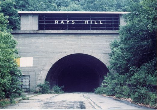 The abandoned roadway above between Rays Hill Tunnel and Sideling Hill Tunnel ."
