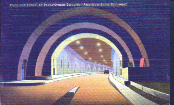 The Pennsylvania Turnpike began as an idea for a railroad-the South Pennsylvania Railroad. William Vanderbilt envisioned a high-speed line going across Pennsylvania as a way to connect the east coast with Pittsburgh and points west. He began construction of the line in 1883, grading right-of-way and digging 7 tunnels. Political and financial maneuvering led Vanderbilt to abandon this effort on July 1, 1885, leaving 4 1/2 miles of half-finished tunnels and miles of graded right-of-way. Only 1 of the Origional 9 Tunnels were actually ever used. A short Line (Narrow Guage)Railroad called the Pittsburgh,Westmoreland,and Somerset Railroad ,used the Quemahoming Tunnel for its route from Ligioner to Somerset for 15 Years.