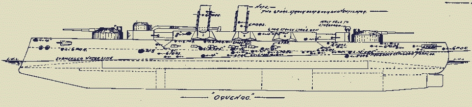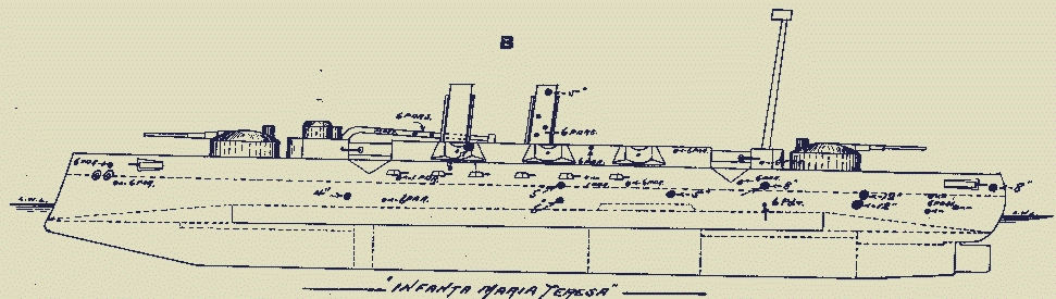 Diagrams of damage to Spanish vessels at Battle of Santiago de Cuba