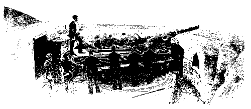 On firing both gun and carriage recoiled up the sloping platform, being held there while the gun was reloaded. Loading completed, gun and carriage were released to run out down the platform to the firing position once again.