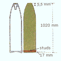 Long HE shell for 25-cm minenwerfer. Note studs on driving band.