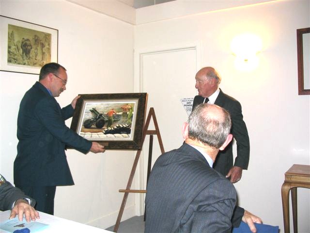 Mike Baker, CO 16 Fd Regt, accepts the L5 painting from Brig John Valintine