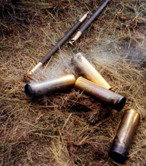 End of missionUsed cartridge cases 163 Battery, 16 Field Regiment, RNZA Exercise Hellfire, March 1999, New Zealand
