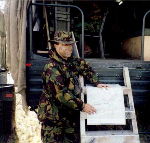 Regimental command post briefing from Lt John Harvey 163 Battery, 16 Field Regiment, RNZA Exercise Hellfire, March 1999, New Zealand