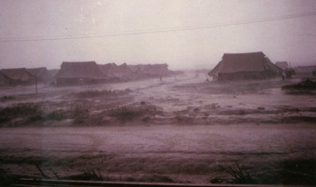 Sunshower, 161 Battery base camp at Bien Hoa. The tents quickly reach saturation point. (Apr 1966)