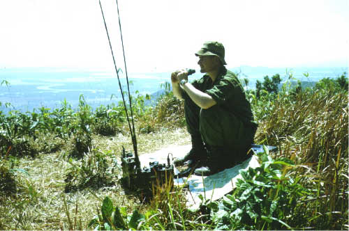Angus Rivers, Forward Observer, Nui Nghe, Vietnam, 1970 Photograph courtesy Rod Simpson Extract from a Forward Observer's War Diary in South Vietnam, 1969 NZ Artillery of the Vietnam War | 161 Bty | Tales from the Trails index | Home | ||