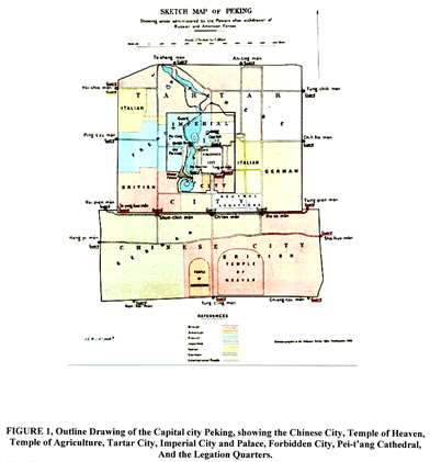 By the 16th June 1900 all foreigners and Chinese converts to Christianity in Peking were either in the Legation Quarters or in the Catholic Cathedral Pei-t'ang. On this same day the Boxers set fire to a large area of the Chinese city of Peking, see map of Peking - Figure 1, that housed shops and firms that dealt with foreigners, this fire destroyed over 4,000 businesses. Now on the 19th June the Foreign Ministers received an ultimatum from the Tsung-li Yamen stating that all foreigners had to leave Peking within 24 hours or their safety could no longer be guaranteed. Safe transit to Tien-tsin was offered to all foreigners who were ready to move on the morning of the 20th June.