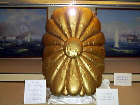 The Imperial Chrysanthemum that is fixed to the bow of IJN warships. This one was on Mikasa at the Battle of Tsushima.