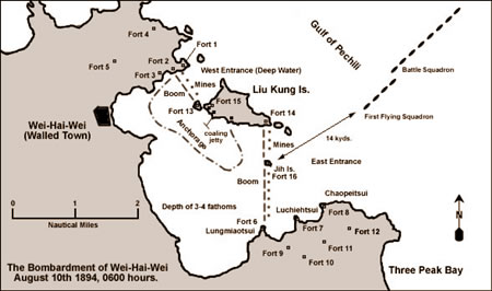 After a long hiatus the Russo-Japanese War Research Society web site will be updated with Extensive articles covering the sino-japanese war of Soon to come: Yes after a very long hiatus the Russo-Japanese War Research Society web site will be updated with an extensive series of articles covering the naval conflict during the Sino-Japanese War of 1894-1895. This series will include complete Fleet Lists as well as detailed accounts of all the naval actions that took place during the conflict including orders of battle and charts for each engagement. This series has been extensively researched and will be a great addition to the Society web site. The Bombardment of Wei-Hai-Wei August 10th, 1894, 0600 hours.The Battle of the Yalu September 17th, 1894, 1243 hours. Attack of the Flying Squadron September 17th, 1894, 1249 hours. The Fall of Port Arthur November 21st, 1894, 0700 hours. The Siege of Wei-Hai-Wei February 2nd – 7th 1895. Breakout February 7th 1895, 0600 hours. ![]() SAMPLE CHART | |||||||||||||||||||||||
