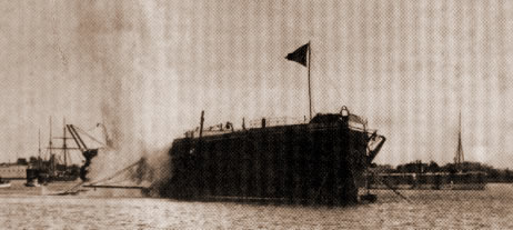 HISTORY The idea of anti-torpedo nets rapidly followed the introduction of the locomotive torpedo. Experimenting against a hulk, numerous devices were tried out for catching torpedoes and rendering them harmless before they ever reached the ship. The most successful of these was galvanised wire net with an 8 inch mesh weighted at the foot and hung out around the ship from 40 ft booms; the depth of the nets when thrown out in to the water was to corresponded with the ship's keel, with the nets hung vertically whilst at rest and extended about 4ft above the water. In 1874 tests these nets arrested all torpedoes fired. A British Admiralty Torpedo Committee set up to enquire into all aspects of torpedo warfare reported in 1876 that due to the threat of torpedo boat attack "none of our large vessels could remain for any length of time during war off an enemy's coast..." The defences recommended were, "patrols of 'guard' or picket boats around the fleet, electric lights concentrated in beams by dioptric projectors which can be pointed in any direction, a machine gun armament and nets of galvanised iron hung around each battleship from projecting 40ft spars". All these were adopted by ironclads, together with greater internal watertight sub-division of ships, also recommended by the committee. The following year 1877 HMS THUNDERER was the first operational ship to be fitted with experimental torpedo nets. In 1884 experiments by both the British & French Navies indicated that while ships were being fitted with large numbers of quickfiring small calibre guns there was no evidence that these had the power to stop a torpedo boat. In fact most hits were obtained only once the attacking boat were well within torpedo range. It looked as if booms and nets were the only available defence for ships at anchor and that at sea only high speed would ensure safety. There was no need to deploy nets whilst underway as the torpedo was only a maximum of twice the speed of the ship so could be out manoeuvred. These early nets where of the Bullivant type named after the London company which manufactured them and made up of steel wire rings 6 1/2 in. diameter joined by smaller steel rings, forming a continuous crinoline and weighed only 1 lb per sq. ft. They were slung out on 40ft long wooden booms, far longer than traditional boat booms, connected to the ship side by a simple heel fitting and triced up high above water by stays from the derricks or mast heads. Extended trials proved that despite their perceived limited stopping ability they were capable of stopping, without damage, the slow 14 in torpedo, which it had been feared might explode and destroy the net. The booms were carried along the sides in turret ships, but usually stowed inboard in broadside ships except for a pair triced up at the bow and the stern. The cumbersome crinoline, stowed around the edge of the upper deck, took a long time to get fixed into position and longer still to restow, and could only be used with the ship at anchor. Additionally being stowed on the deck edge the nets were prone to damage in bad weather sometimes even being completely washed away. During 1885 the RESISTANCE was prepared for a series of trials on the effect of guns & torpedoes and the protection against them. The ship was moored fore and aft in Portchester Lake. One of the main objects of the trial was to test the effectiveness of torpedo nets and to determine the minimum distance from the hull at which they would be effective. On 21 September 1886 a 80lb charge was exploded 30ft from the side which shock her but caused no damage. This seems to have been in the nature of a calibration shot to see that all was well. On 22 September, the torpedo vessel VESUVIUS fired an old pattern 16in torpedo with a 91lb charge from her bow submerged tube against the nets which were still rigged 30ft from the ship's side. The range was a mere 100 yards, both to ensure the torpedo hit in the desired place and that it impacted the nets at high speed. The explosion was impressive but the damage was very localised, one net supporting boom being unshipped, there was no damage to the ship. Since the value of nets had been demonstrated, it was possible to use static charges, hung from a boom, rather than the expense of real torpedoes. A charge was exploded at 20ft which caused no damage. The next charge was detonated at 15ft from the side and caused some minor leaks in the shell plating. There was then an interval until the new series of trials started on 9 June 1887 which was intended to try a new heavier design of Bullivant net. This used steel booms which were only half the weight of the old wooden design and with stronger and hinged heel fittings. It was so designed that it could be got out or stowed very much more quickly than the older nets. Once again VESUVIUS was used to fire a 16in torpedo which tore the net but did no damage to the ship. On the 10 June a 220lb charge was exploded 30ft from the side and 20ft down. The only damage was that some net booms were bent. The lessons learned from these trials as given in the Naval Annual were: Nets of the type in service will stop a Whitehead torpedo