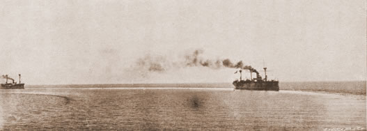 Two more boats collided in the confusion, another had her boilers burst, yet another was badly hit. Only one boat came out unscathed. As mentioned further on in "Personal Characteristics," the real truth of the attack has never been known, and never will be, save vaguely.
