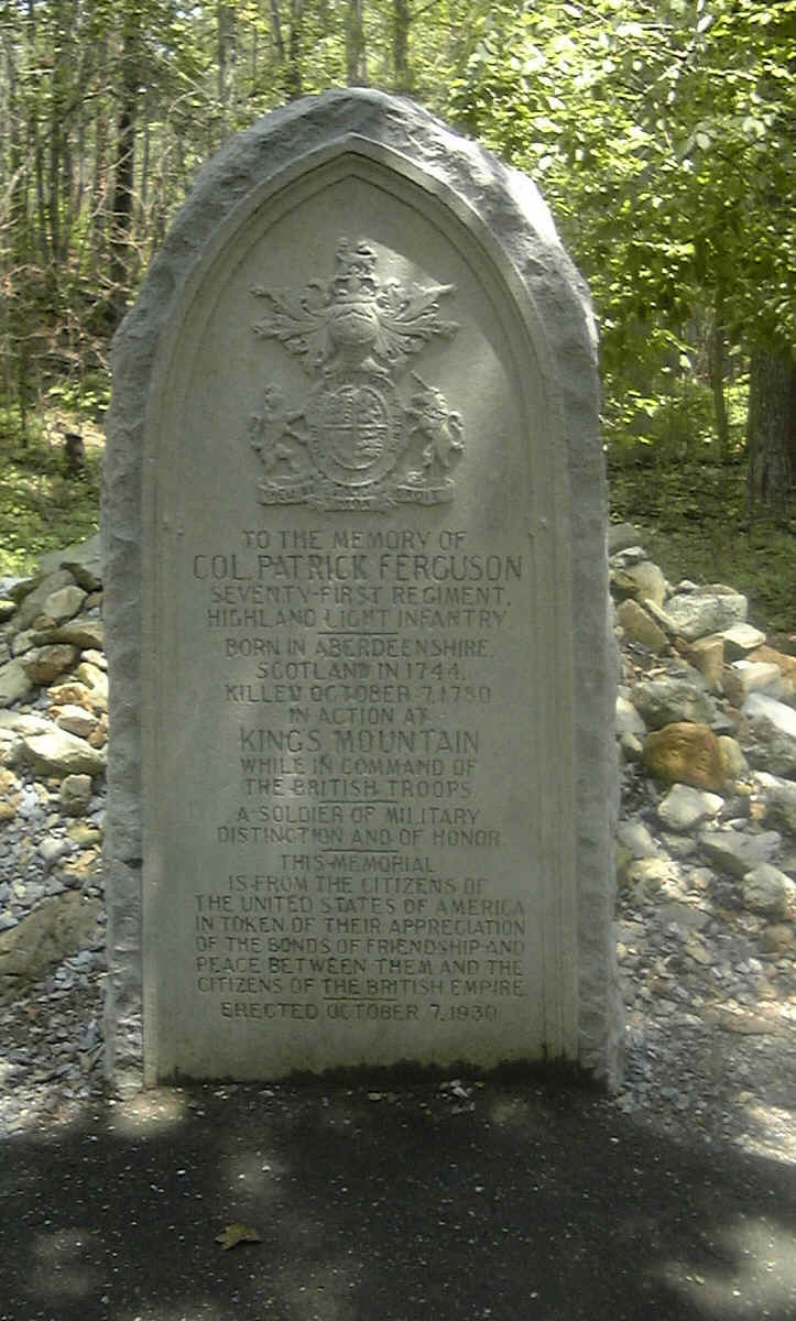 Grave Site of Major Patrick Ferguson Gravestone of Major Patrick Ferguson, set up in 1930, is located at the spot where tradition indicates that he was actually buried.