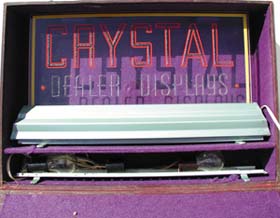 fixture. The etched glass sign is bottom edge-lit. Crystal