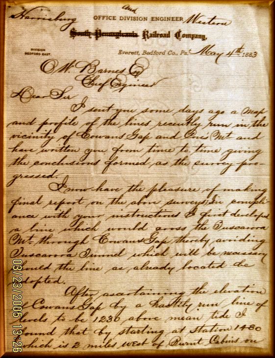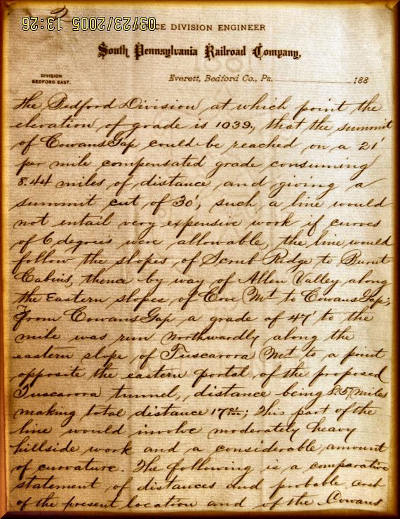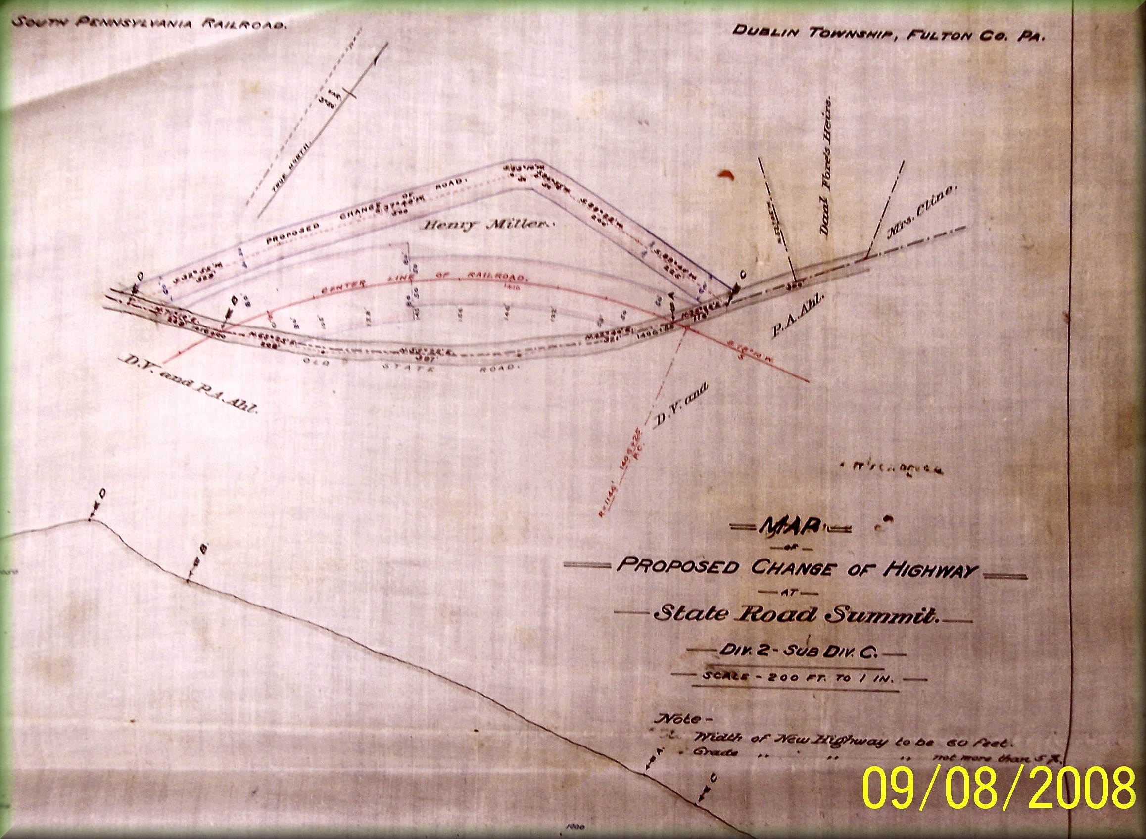 ![]() Above L&R. Standing in the same place as the old photographer who took the photo on the left. Look at the back ground hills. ![]() Above l&r: Same east portal Allegheny Railroad tunnel but over 100 years apart. ![]() Above: Same west portal of the Allegheny Mountain Tunnel. The turnpike portal (r) and railroad portal behind brick wall (l) tunnels. ![]() Above: From the railroad work site (turnpike today) looking down onto the Henry Felton Farm. Mp. 128 on Pa. Trpk. ![]() Above: Both views of the cut at the Allegheny Tunnel view looking west from above the railroad tunnel alignment. ![]() Above: Somerset interchange looking south east. The alternate SPRR/PW&S grade entering at the interchange on the right. B&O grade along the left side. ![]() Above: Somerset looking north through town. The South Penn is located six miles north of this town. ![]() Above: Looking east through the town of Burnt Cabins. The SPRR would be where the turnpike is out of the picture to the right. Above: Left Then, Right Now. ![]() Above: Using 1939 (left) aerial photos to check out the railroad maps (right). ![]() Above: Use this aerial to see the changes in this same location west of Burnt Cabins. ![]() Above: A survey was done into the Cowans Gap State Park site. This was a possible route to eliminate the Tuscarora Tunnel. ![]() ![]() Above: Use this photo to compare it to the post card above. ![]() Above: A panaramic shot of the famouse Horse Shoe Curve in Altoona, Pa. See more photos. Click this next button. ![]() [email protected] Phenomenal! |