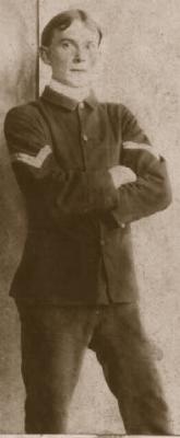 The image at left is of Corporal William Hilyerd. It was taken in Puerto Rico on December 1, 1898, nine days before the official end of the war. Hilyerd, whose service included helping to maintain the island's telephone system, was born on April 26th, 1881. He enlisted in Company K of the First Kentucky Volunteer Infantry on May 13th, 1898, at Lexington, Kentucky. He was honorably discharged with the regiment in early 1899. Hilyerd, a blacksmith by trade, was 5 feet 8 1/4 inches tall with a light complexion, brown eyes, and red hair. After the war, he continued to live in Louisville, working as a clerk.