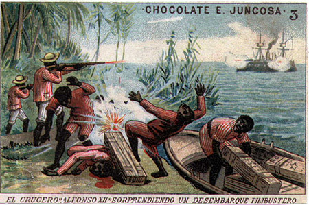 As war approached, ALFONSO XII was partially disarmed. Three of her 160-mm guns was mounted on Chorrerabattery, and other three was mounted at Regina battery. Therefore ALFONSO XII's guns did fire on the American navy. On May 10, the Chorrera battery fired on the US auxiliary cruiser TRITON. On July 19 guns of the ALFONSO XII fired on the USS MAYFLOWER.