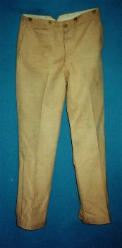 The leggings are cavalry, as indicated by the correct number of hooks and grommets. However, Rough Rider enlisted men wore only the stable dress dyed light brown during their Cuba service, unlike this one.