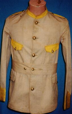 This particular uniform may or may not have seen service in Cuba. Many members of the unit apparently procured new uniforms at Camp Montauk before disbandment, and others outfitted themselves for reunions. Which of these categories this uniform falls under is not clear.