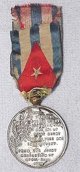 This medal, properly called the "Medal of the Veterans of the Spanish American War," was awarded to American who could prove that they fought with the Cubans, and it had to be applied for. A copy of a Certificate of award indicates that this medal was presented to Corp. Oscar P. Ruth, on September 7, 1953.