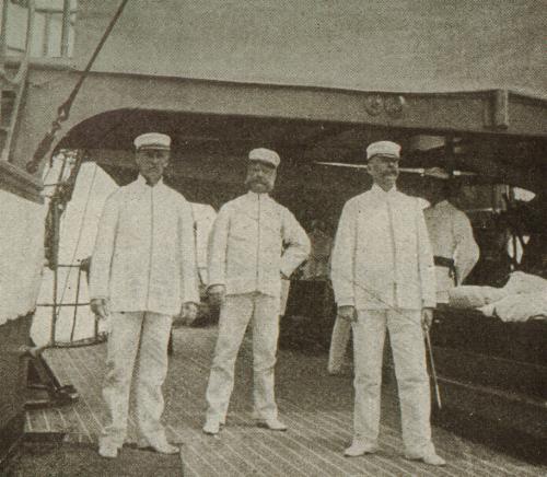 Excuse pencil, but I am writing on the deck aft, under the awning, and ink is not handy. Well, we have won a splendid victory over the Spaniards. We left Hong Kong on April 25, Mirs Bay, April 27, and arrived off Manila Bay at midnight on April 30. We steamed in with our lights all out, and by daylight we were off Manila, where we found the Spanish fleet, or rather, at Cavite, seven miles from Manila. We attacked them at once, the Olympia leading, and, being flagship, she was of course the principal target, but we (our fleet) were too much for them, and after fighting two and a half hours, hauled off for breakfast, giving them another hour of it afterward. We succeeded in burning, sinking and destroying their entire force. They were also assisted by shore batteries. Their loss was very heavy, one ship, the Castilla, losing 130 killed, including the captain.