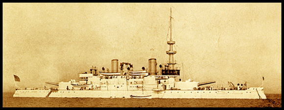 13 inch gun turret, the single military mast, and the side-mounted 8 inch